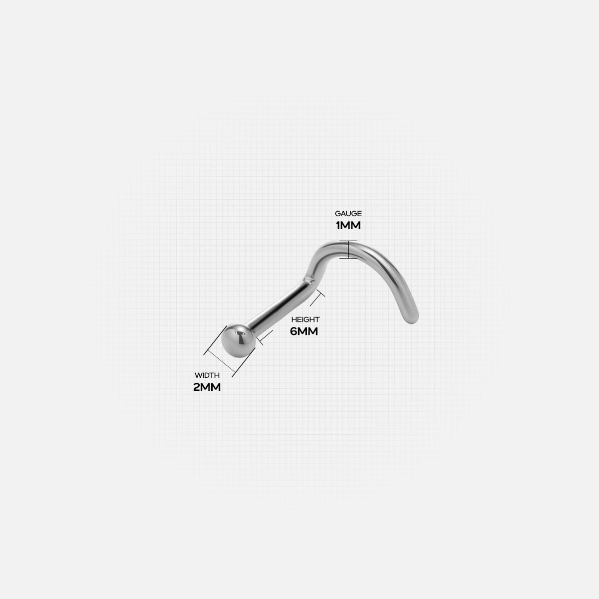 Ball Nose Screw features a polished spherical top and curved post for a secure, comfortable fit in nose piercings. This item is sold individually.