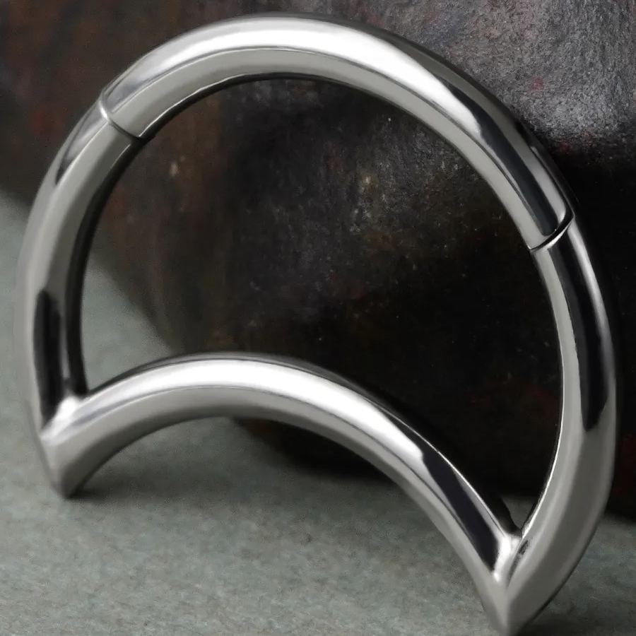 Das Lunar Renewal Septum Piercing hat eine glatte, perfekt polierte Halbmondform. Dieser Artikel wird einzeln verkauft.