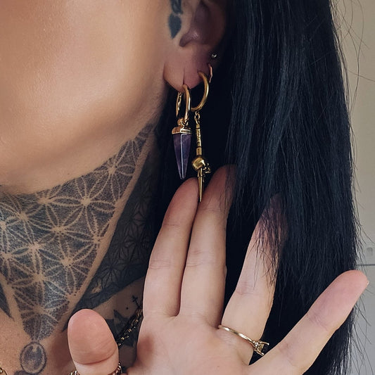 Blades without battle. Swords and daggers reinterpreted as symbols of clarity and focus. Explore earrings, clickers, necklaces, and tunnels inspired by discipline and defense.