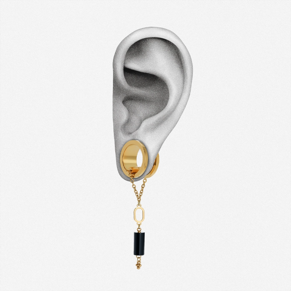 Midnight Axis Dangles pair a gold circular base with a black cylindrical drop on chain—clean lines, smooth motion, high-contrast shine. This item is sold as a pair.