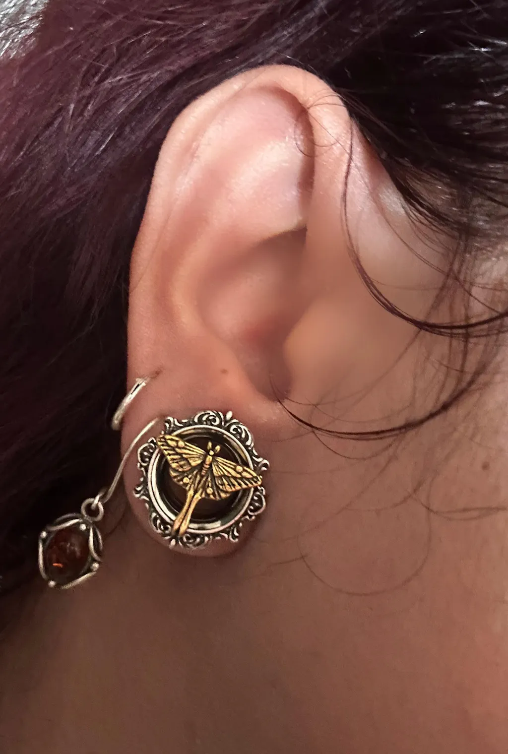 Ces tunnels, finement conçus avec des ornements en argent et un papillon de nuit doré, allient élégance classique et modernité. Cet article est vendu par paire.