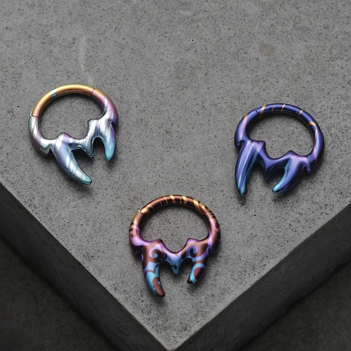 Fang Design Clicker features fluid lines and vibrant colors, inspired by the unique shapes of insect fangs, making it a standout in the world of fashion jewelry. This item is sold individually.