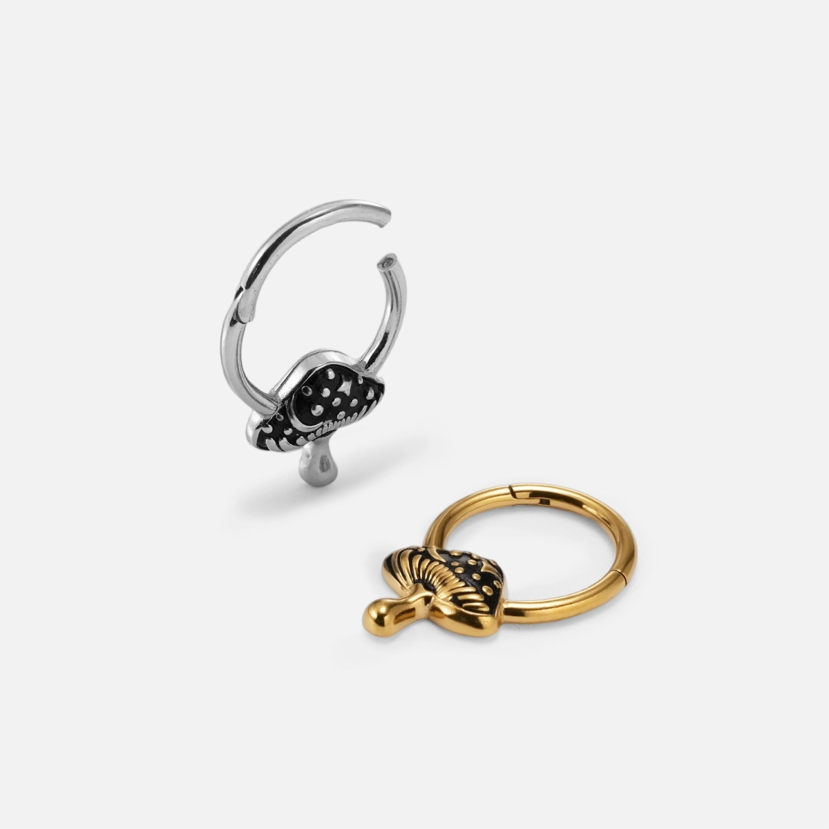 Ideal for fans of mushroom jewelry, celestial clickers and fantasy septum styles.