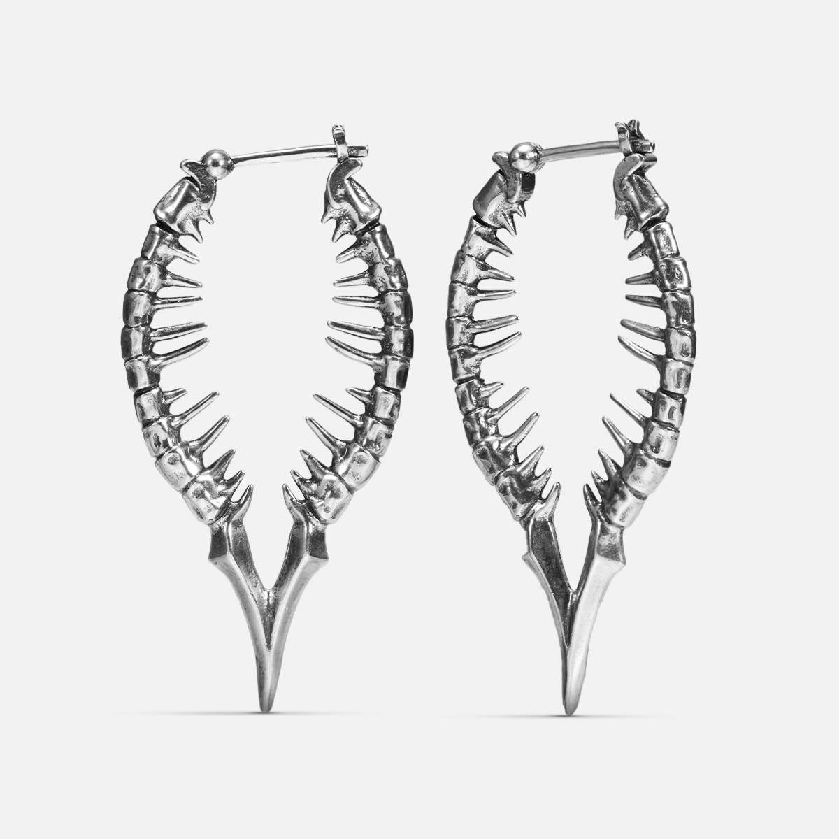 Spinal Reverie Earrings feature an eye-catching design inspired by the elegant curves of the spinal column, blending organic shapes with bold lines for a unique look. This item is sold as a pair.