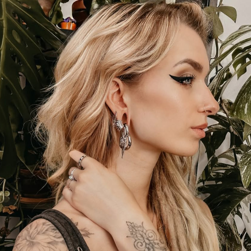 Sleek and modern, this ear cuffs features stacked metallic rings, exuding industrial elegance. Available in 8mm and 22mm sizes. This item is sold as a pair.