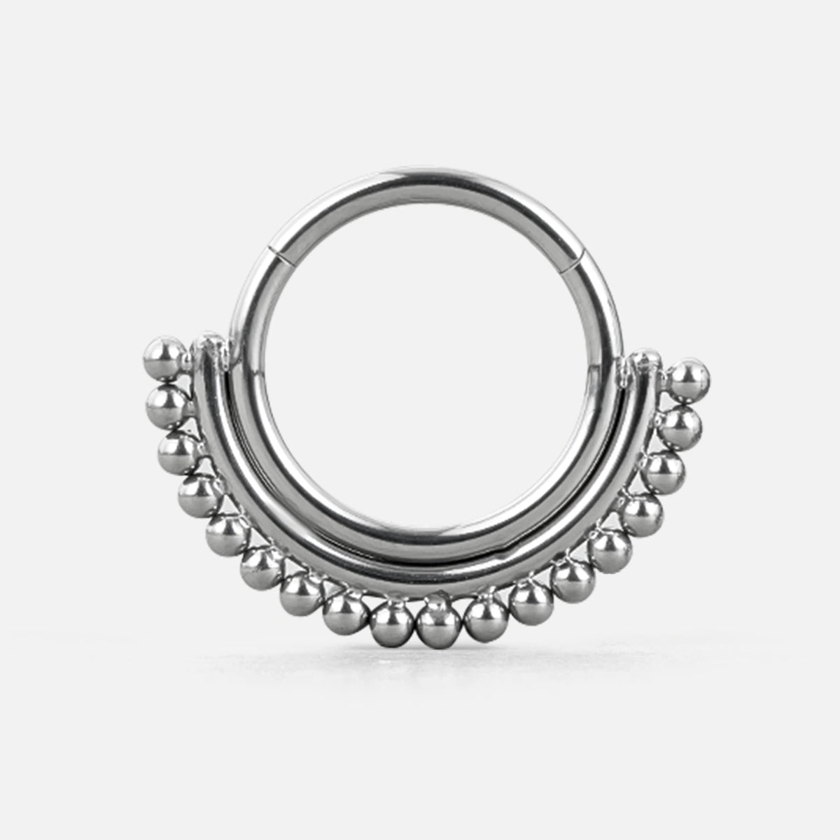 The Astral Unity Clicker features a semi-circular design with evenly spaced beads, creating a balanced and elegant look.This item is sold individually.