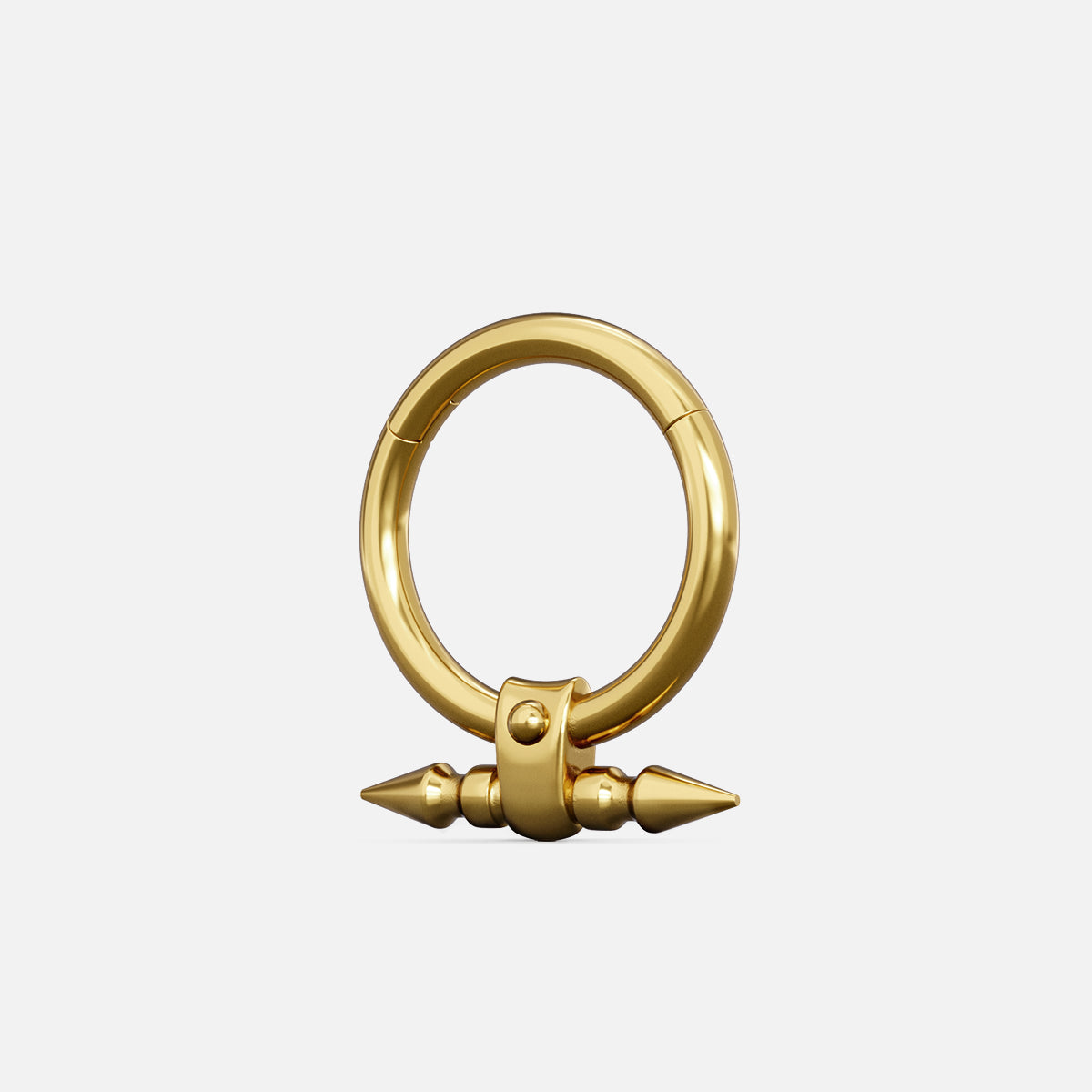 Featuring a sleek hoop paired with a horizontal bar tipped by two sharp spikes, the Dual Spike Clicker blends clean structure with an unmistakably bold edge.