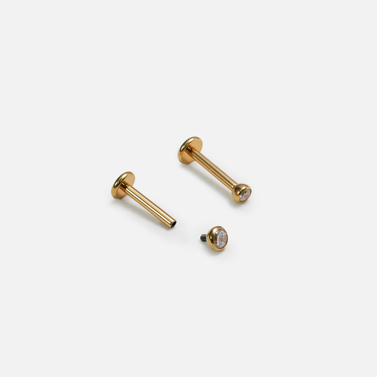 Minimal Sparkle Flat Back Stud features a polished bezel-set gem and smooth backing for secure comfort in cartilage, helix, tragus, or lobe piercings. This item is sold individually.
