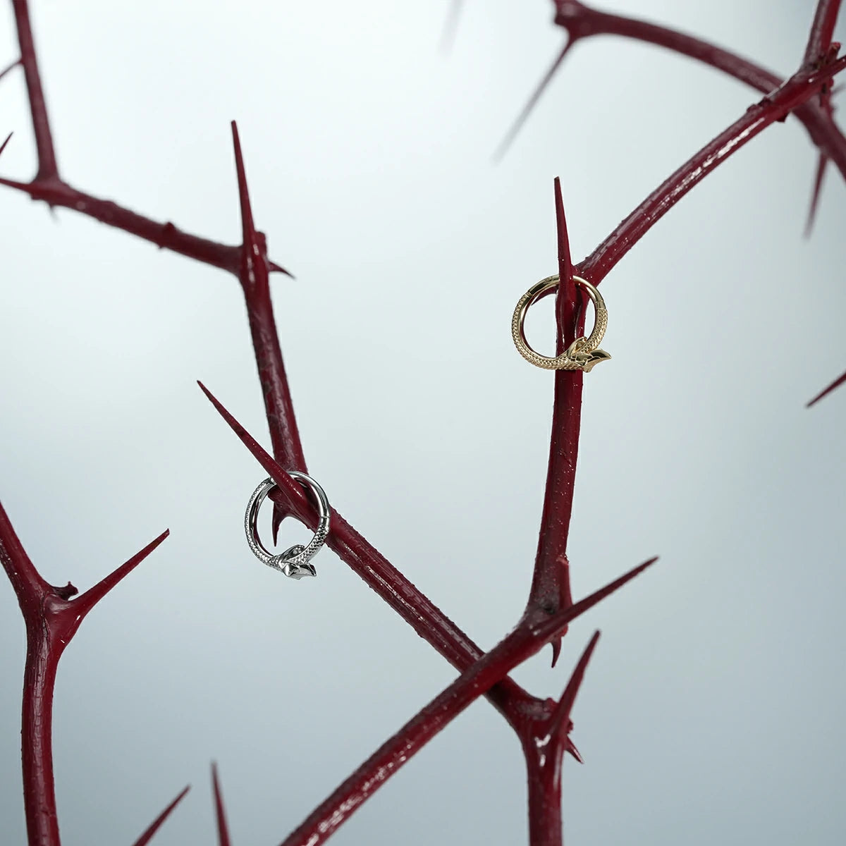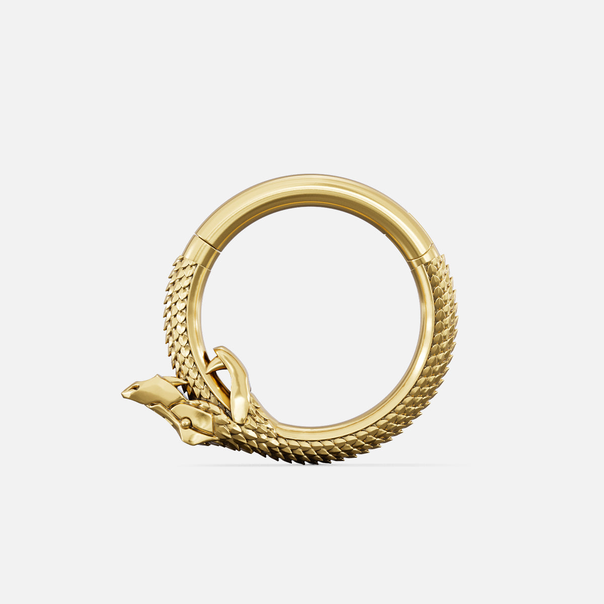 Ouroboros Coil Clicker features a sculpted serpent forming a seamless circle, detailed with engraved scales and a smooth hinge for easy wear. This item is sold individually.