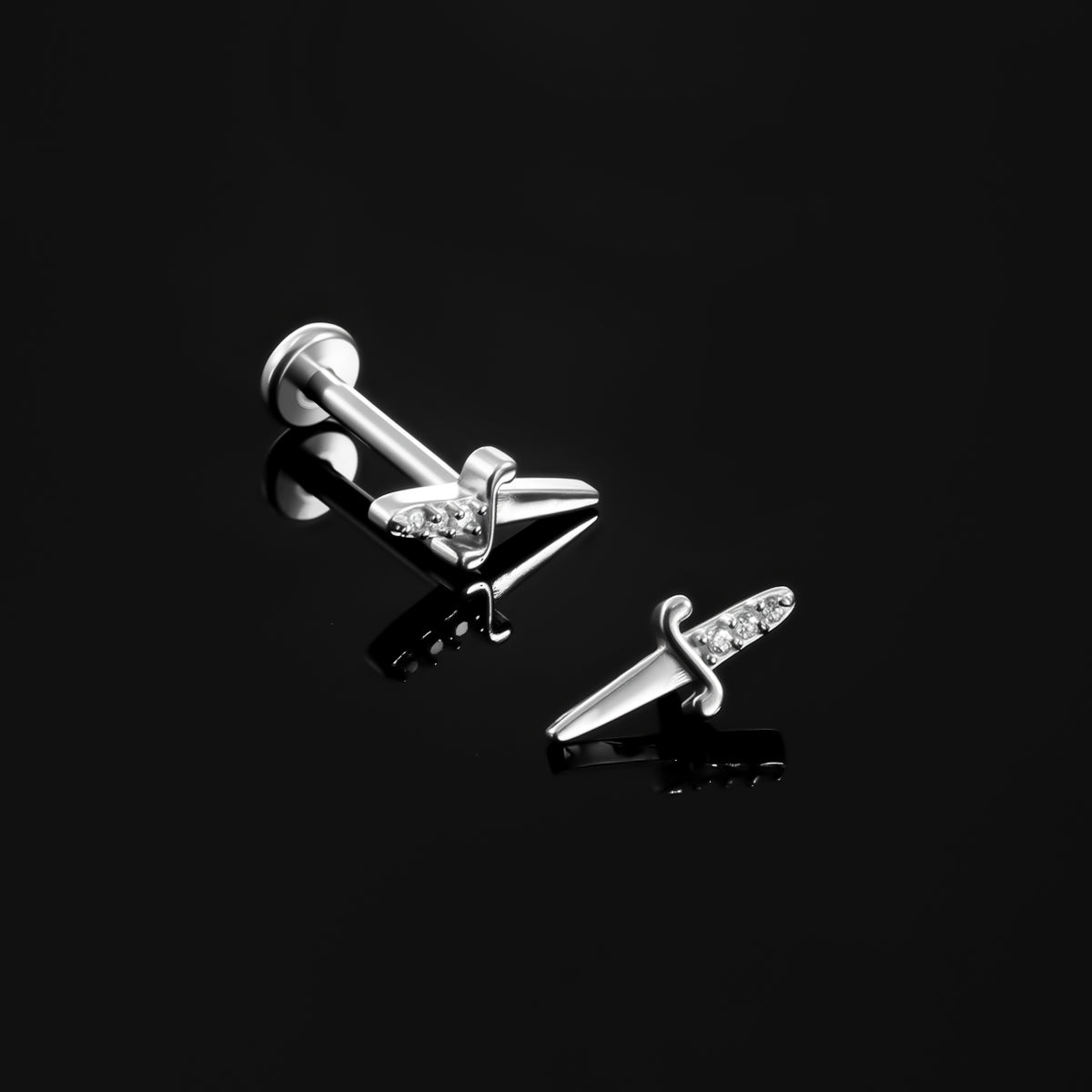 The Shining Blade Flat Back Stud features a striking dagger shape, blending sharp elegance with modern sophistication. This item is sold individually.