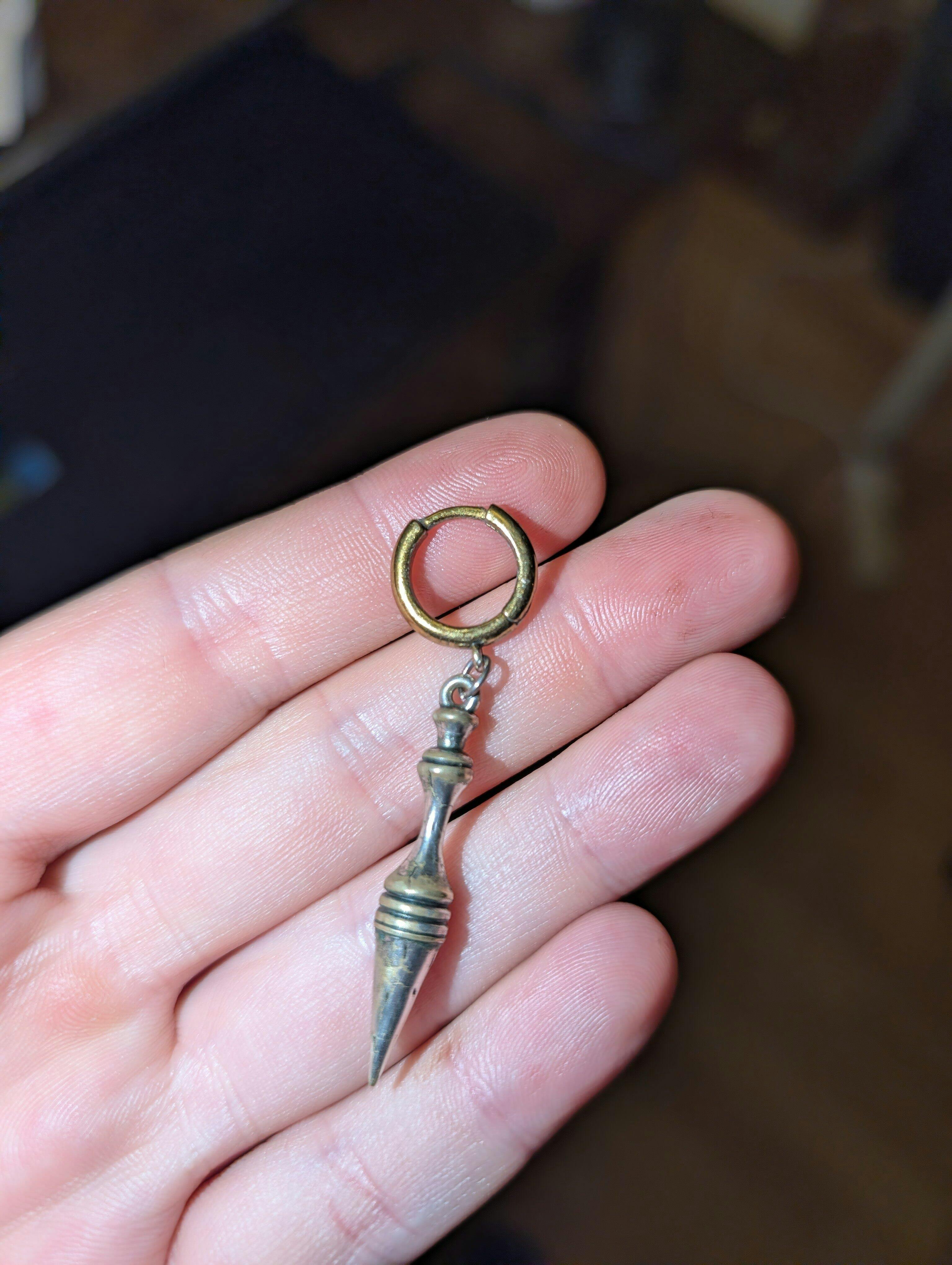 Sleek and striking, these earrings feature a spear-like design, symbolizing elegance and strength. Crafted with precision, they offer a unique twist on classic piercing jewelry. This item is sold as a pair.