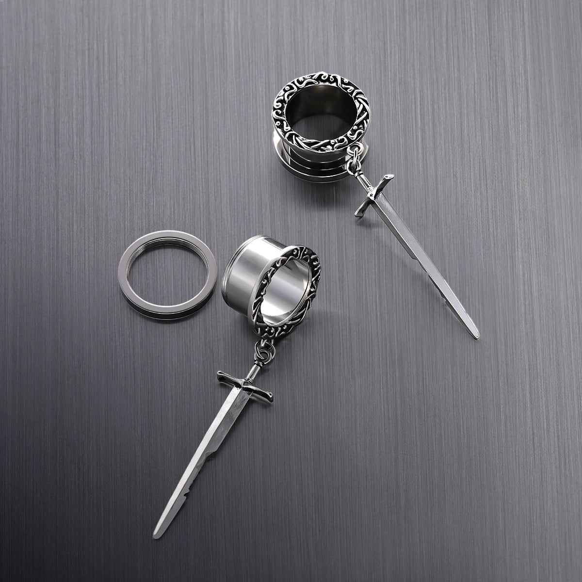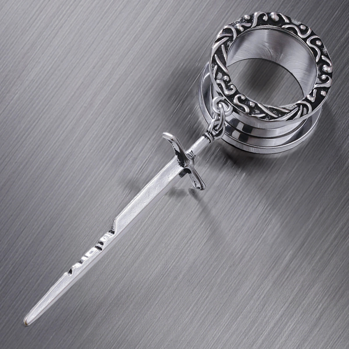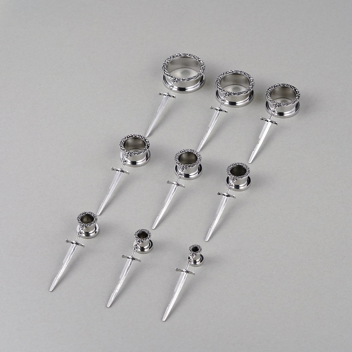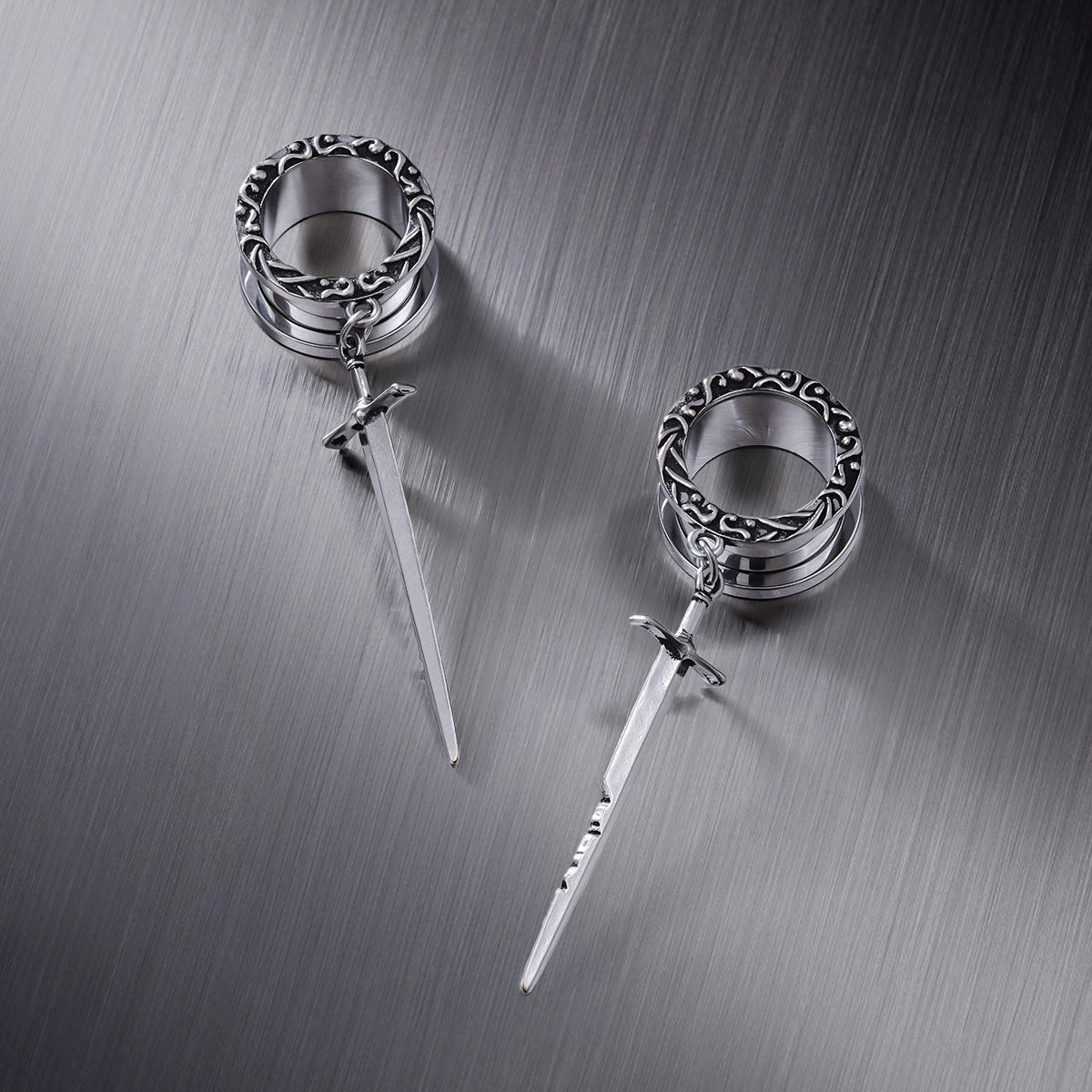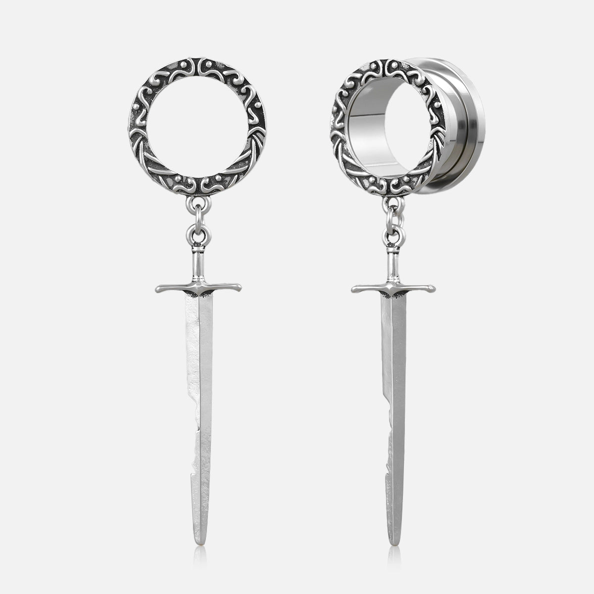 Sword-inspired design with intricate circular patterns, exuding elegance and strength. This item is sold as a pair.