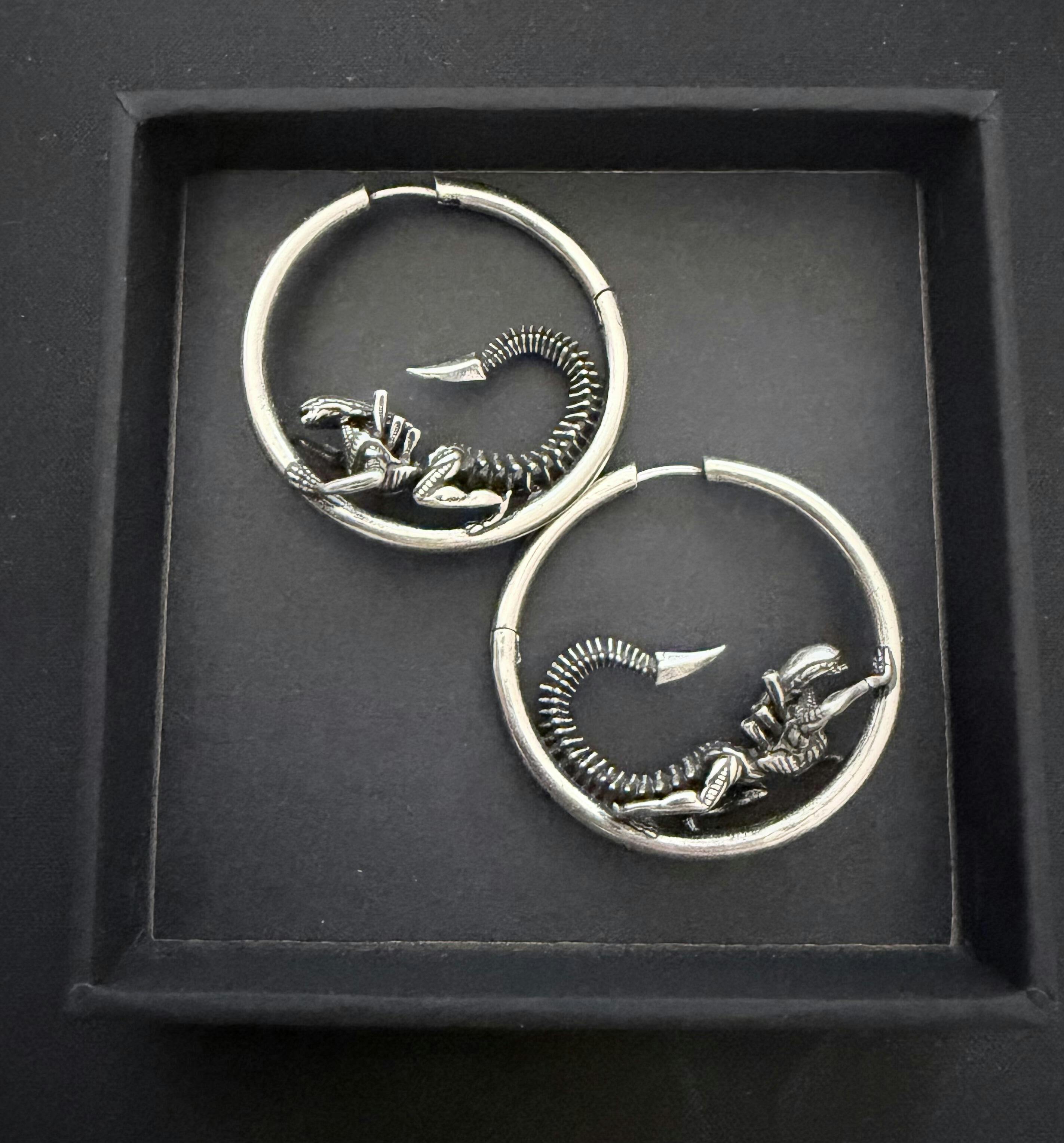 BIOMECHANICAL ALIEN HOOP EARRINGS