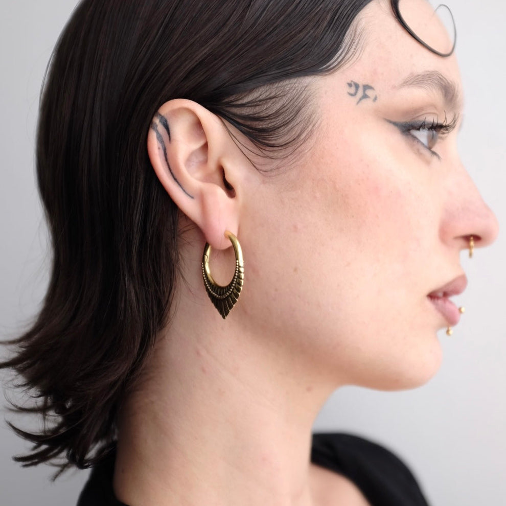 The Artisan Inspired Earrings feature exquisite craftsmanship with smooth lines and unique textures, creating an elegant and distinctive look. This item is sold as a pair.