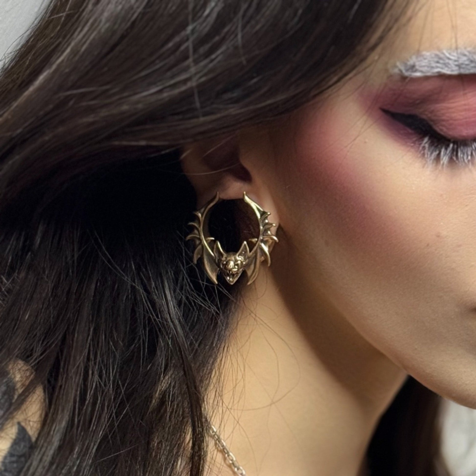 The design features a detailed bat with outstretched wings, creating a striking and gothic visual.This item is sold as a pair.