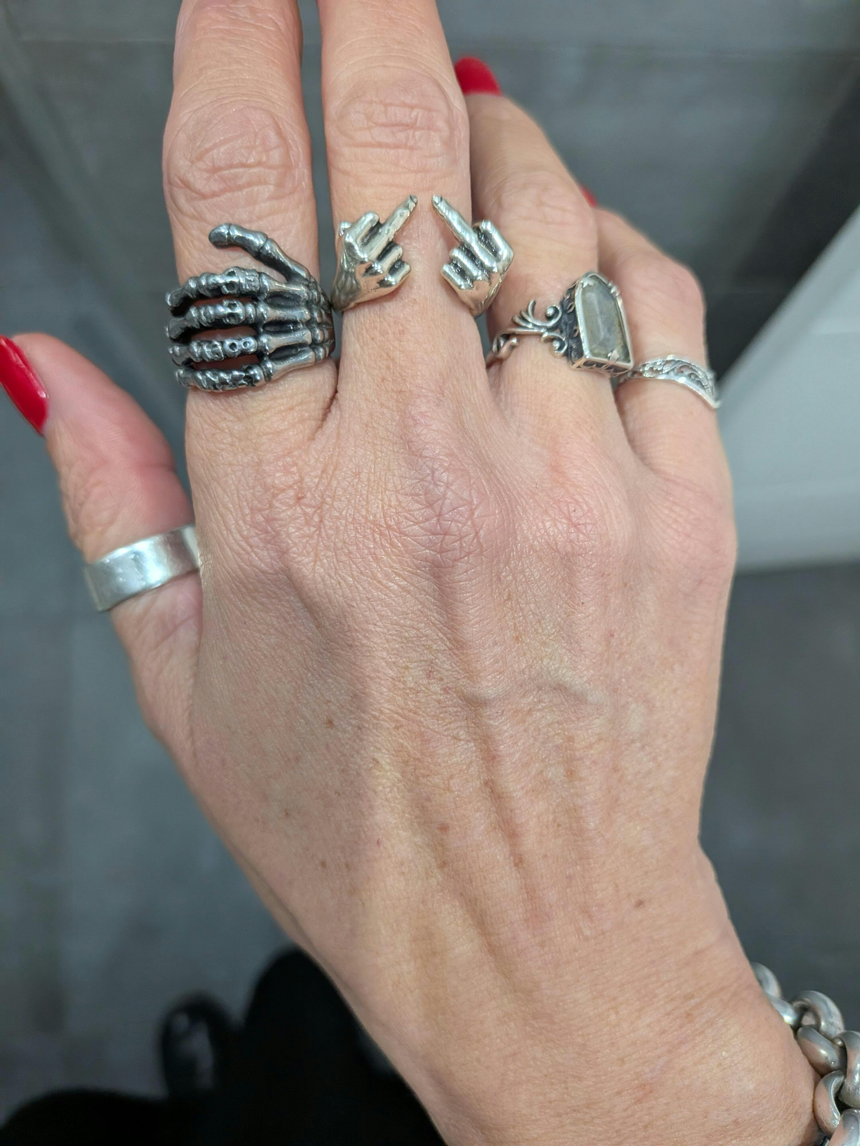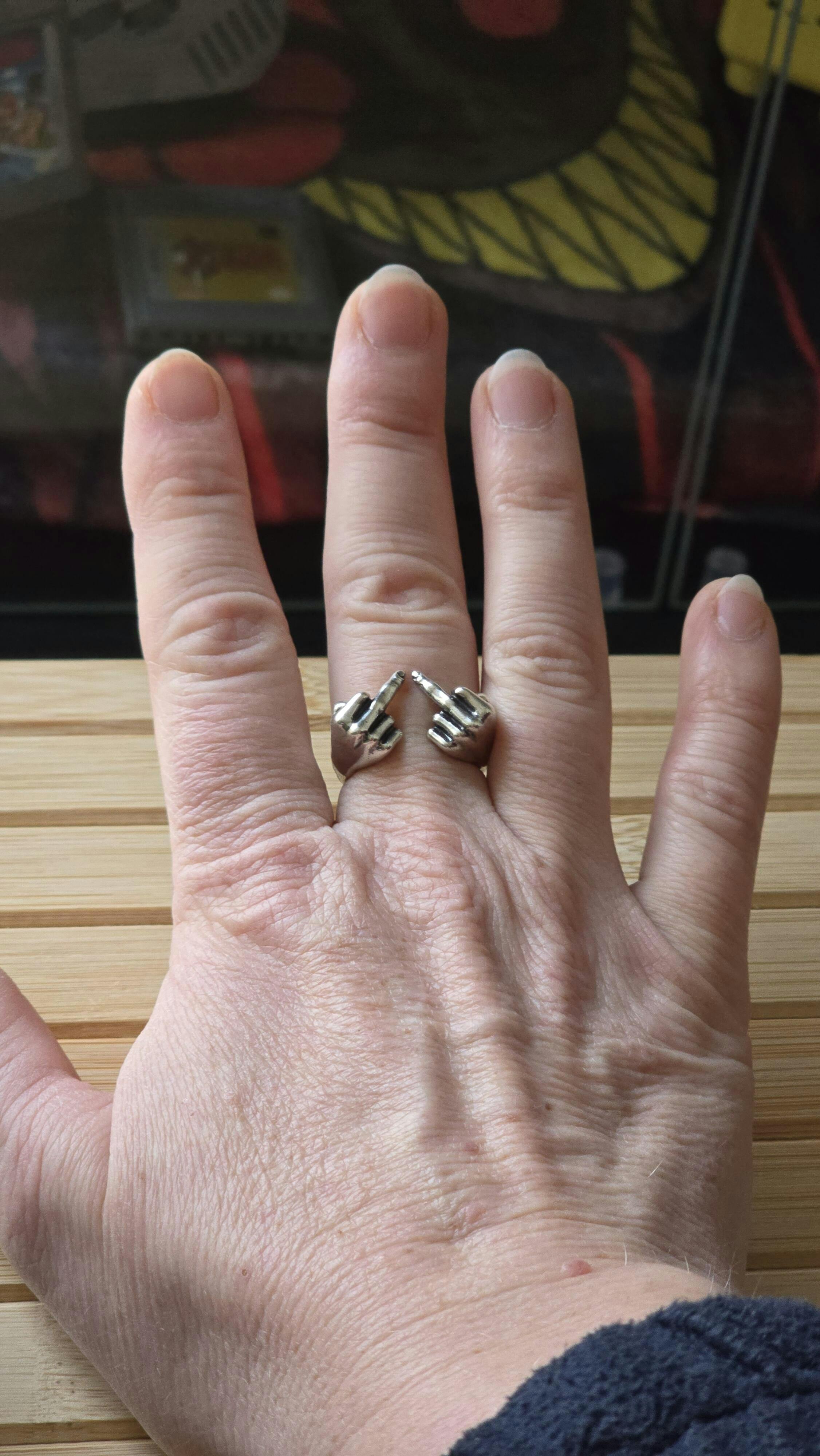 Crafted from 925 silver, the "Bold Rebellion" RING features two hands flipping the middle finger, showcasing intricate details.This item is sold individually.