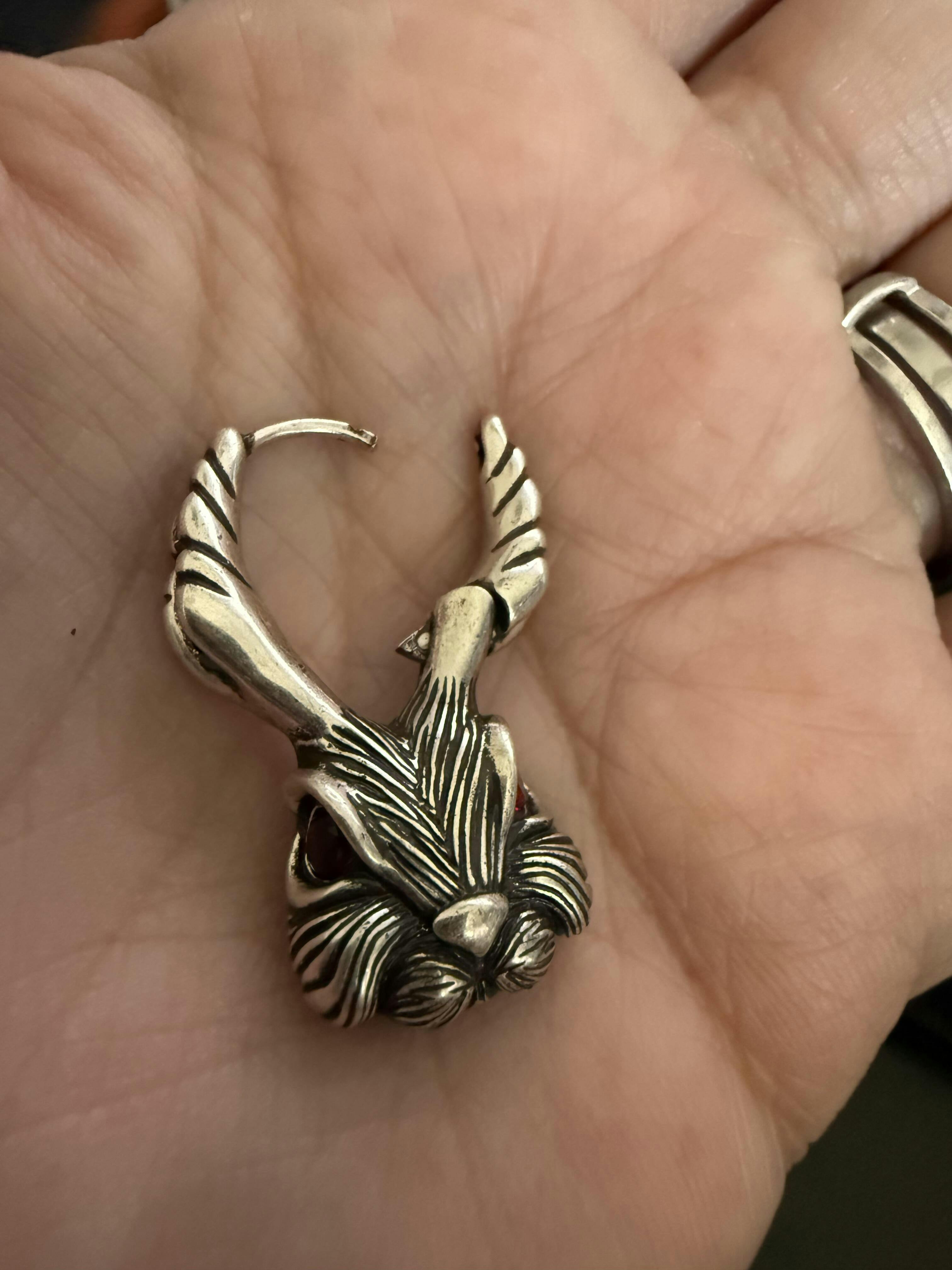 Elegant and whimsical, these earrings feature the mythical jackalope, crafted with intricate details. This item is sold as a pair.