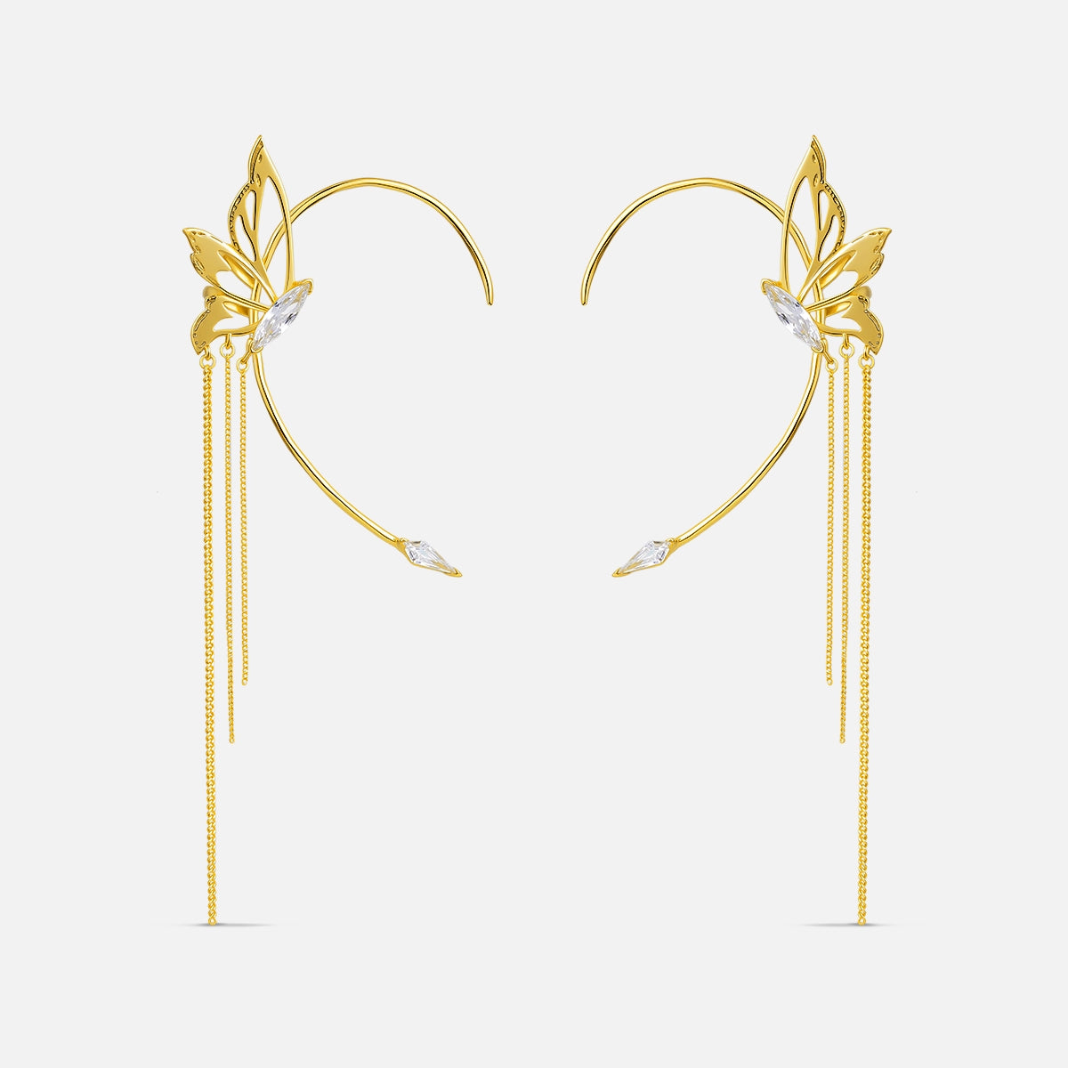 Inspired by gothic fantasy art, this ear cuff features an elegant moth spreading its sculpted wings while long chains flow gracefully from the body, creating movement and drama.