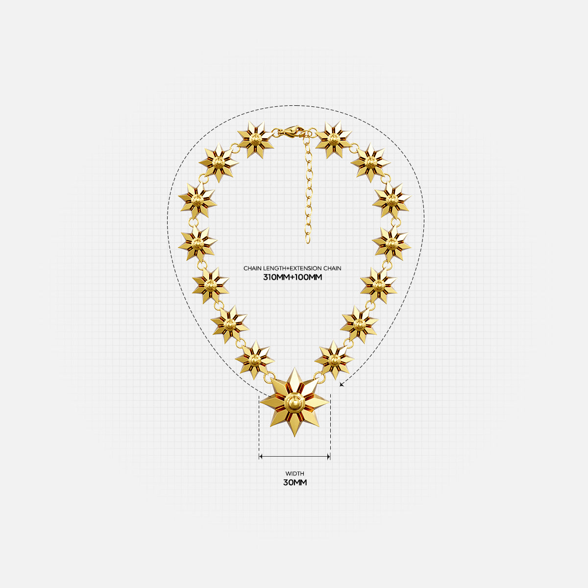 The Punk Bloom Necklace reimagines floral beauty through sharp geometry and polished metal, transforming a bloom into a symbol of strength and defiance.