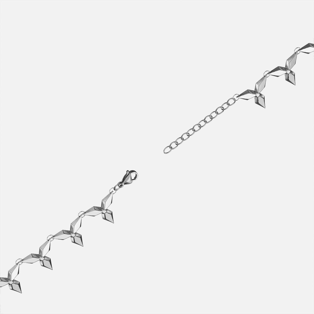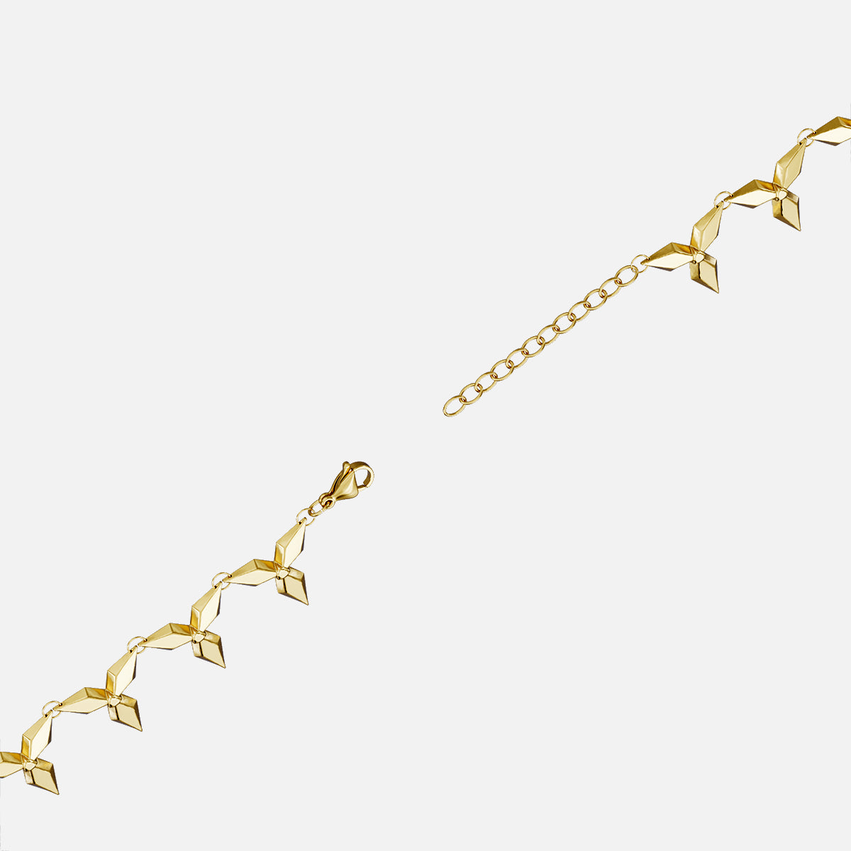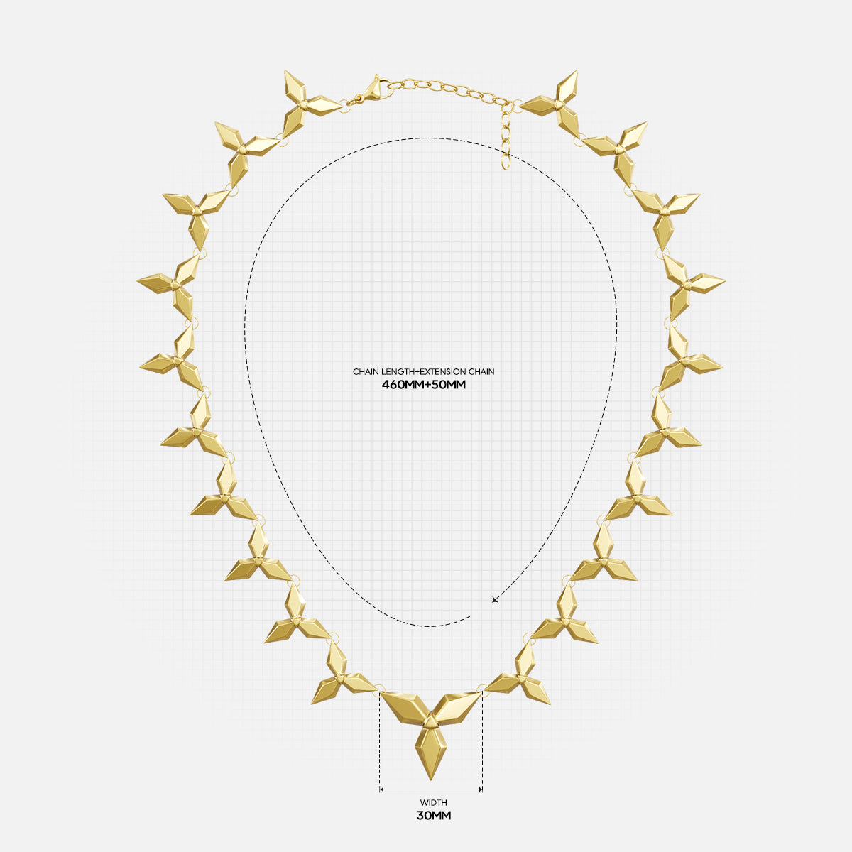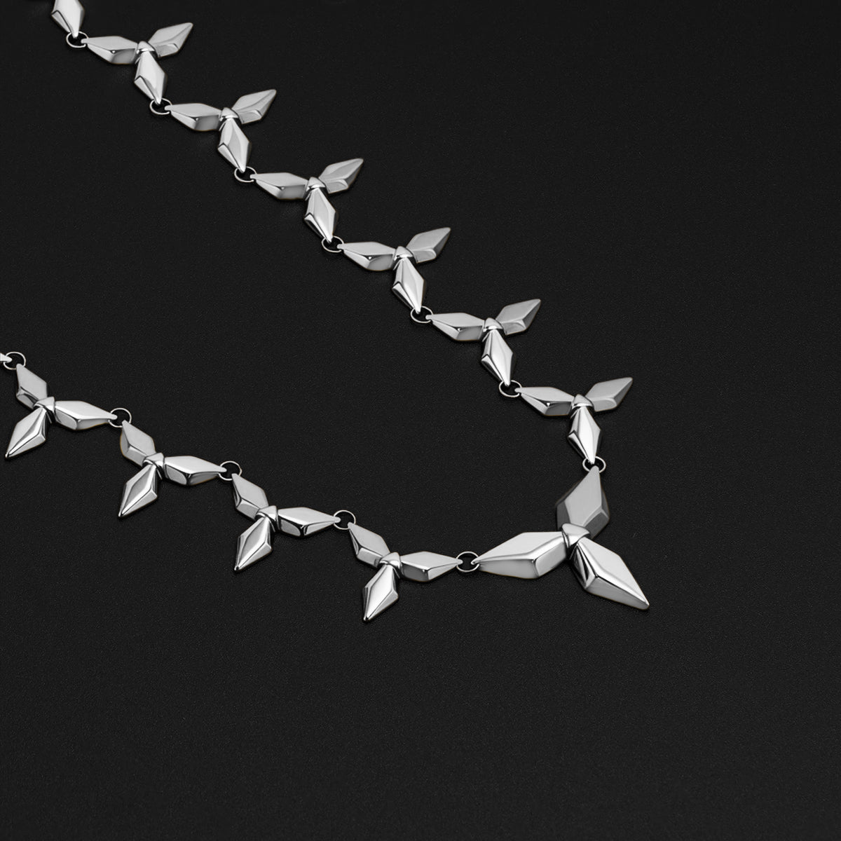 Punk Petal Necklaces feature sharp geometric petals linked into a sculptural chain, blending floral form with industrial precision.