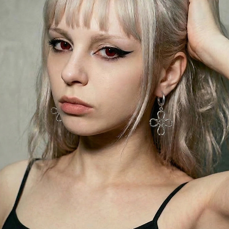 Inspired by the quatrefoil motif widely seen in Gothic cathedral windows and medieval ornamentation, the Quatrefoil Cross Earring features a flowing cross formed by four elegant looping shapes.
