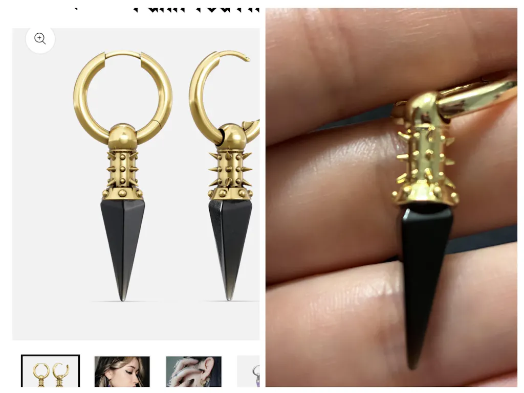 Earrings are beautiful but they appear smaller than the photos displayed, crystal in original photo looks bigger and fuller, earrings I received have gaps at the bottom where crystal is placed