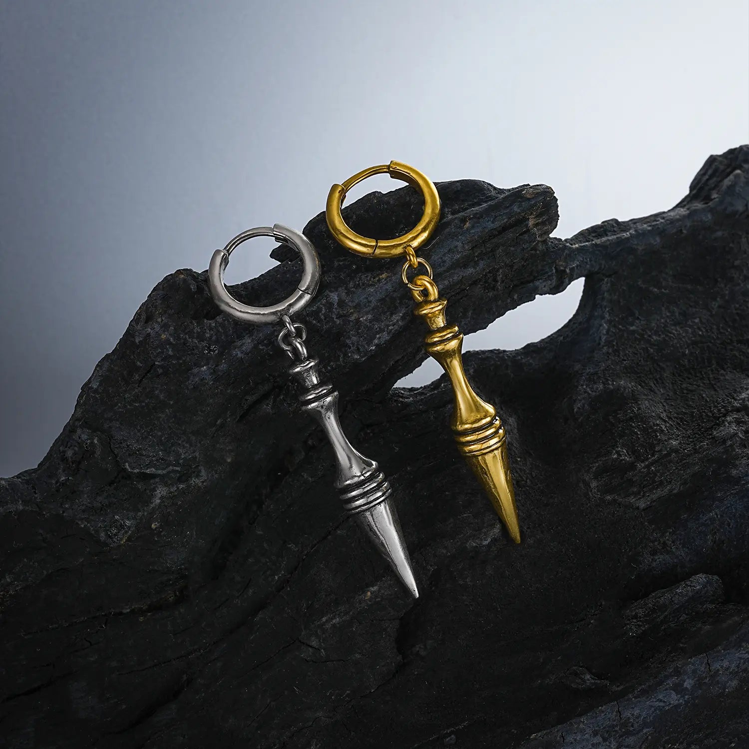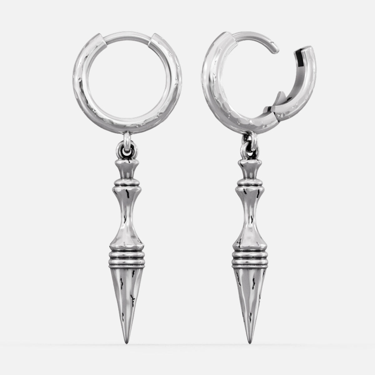 Sleek and striking, these earrings feature a spear-like design, symbolizing elegance and strength. Crafted with precision, they offer a unique twist on classic piercing jewelry. This item is sold as a pair.
