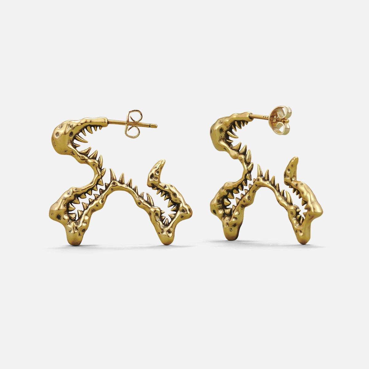 Inspired by surreal horror art and nightmare creatures, the earrings echo untamed forms beyond rational control.