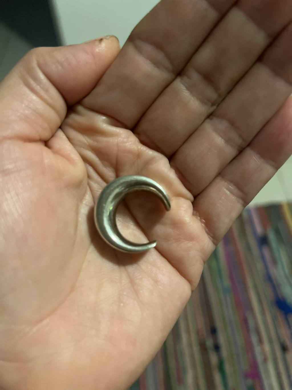 Lunar Eclipse Tunnels feature a sleek, crescent moon design with a metallic silver finish, offering a modern yet mystical look.This item is sold as a pair.
