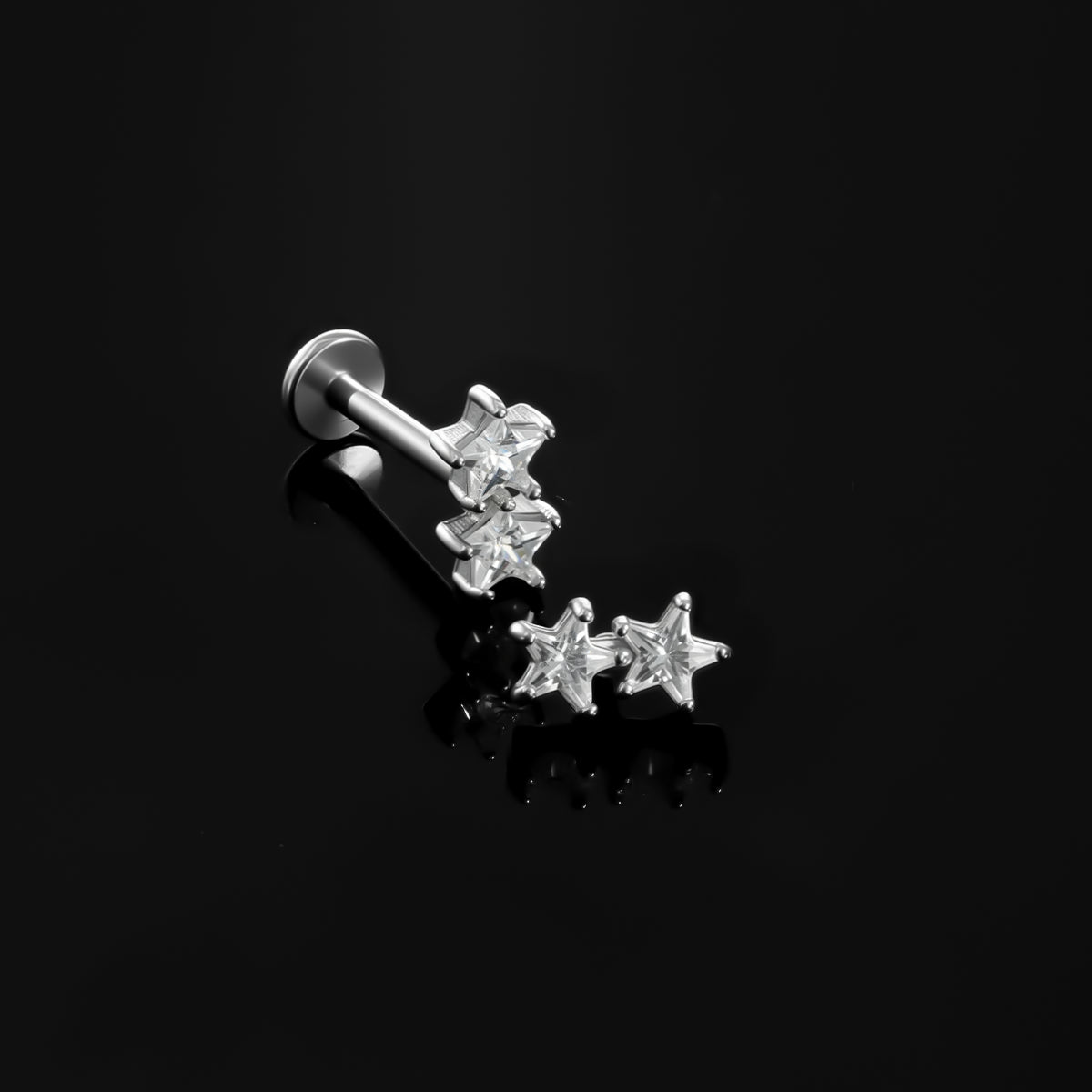 The Twin Stars Flat Back Stud features a sleek design, crafted from high-quality materials that shimmer like celestial bodies, perfect for any style. This item is sold individually.