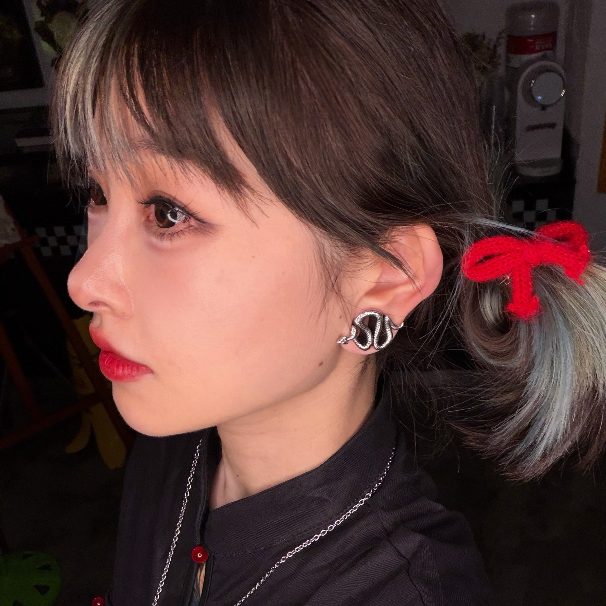 Crafted in the form of an elegant serpent, these tunnels feature sleek metal, exuding a mystical allure. This item is sold as a pair.