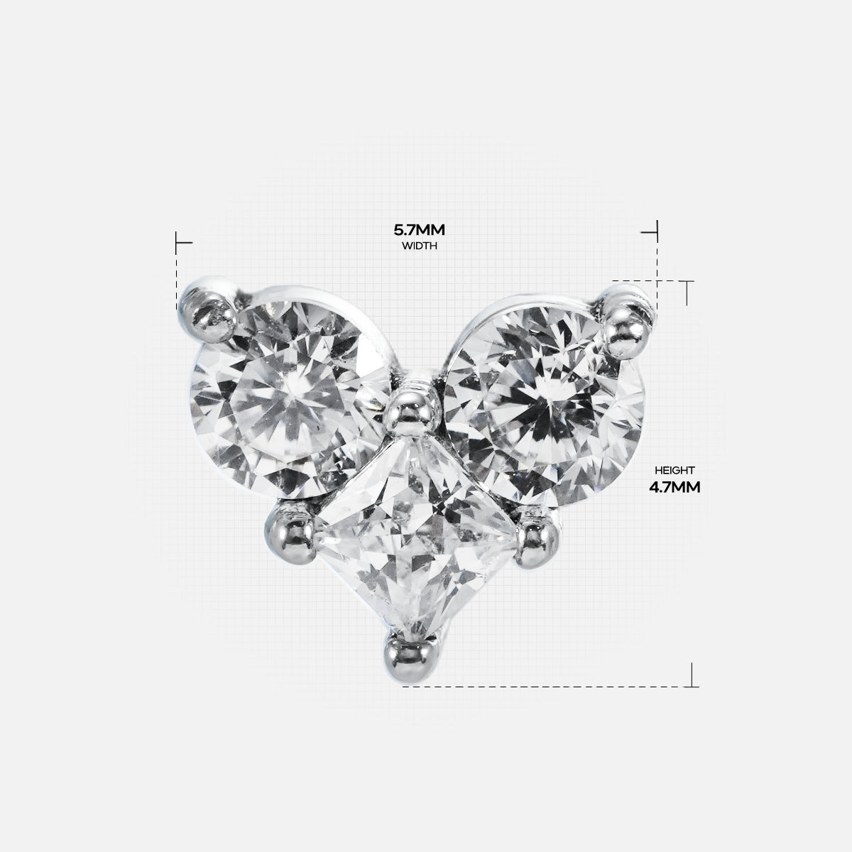 The Heart Gemstone Flat Back Studs feature a unique geometric arrangement of three sparkling gemstones, blending elegance with modern style, perfect for various piercing looks. This item is sold individually.