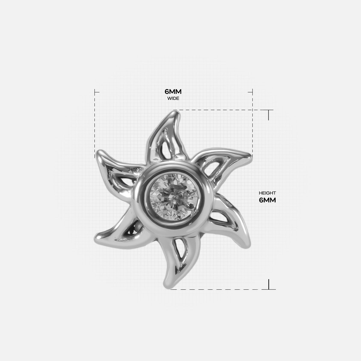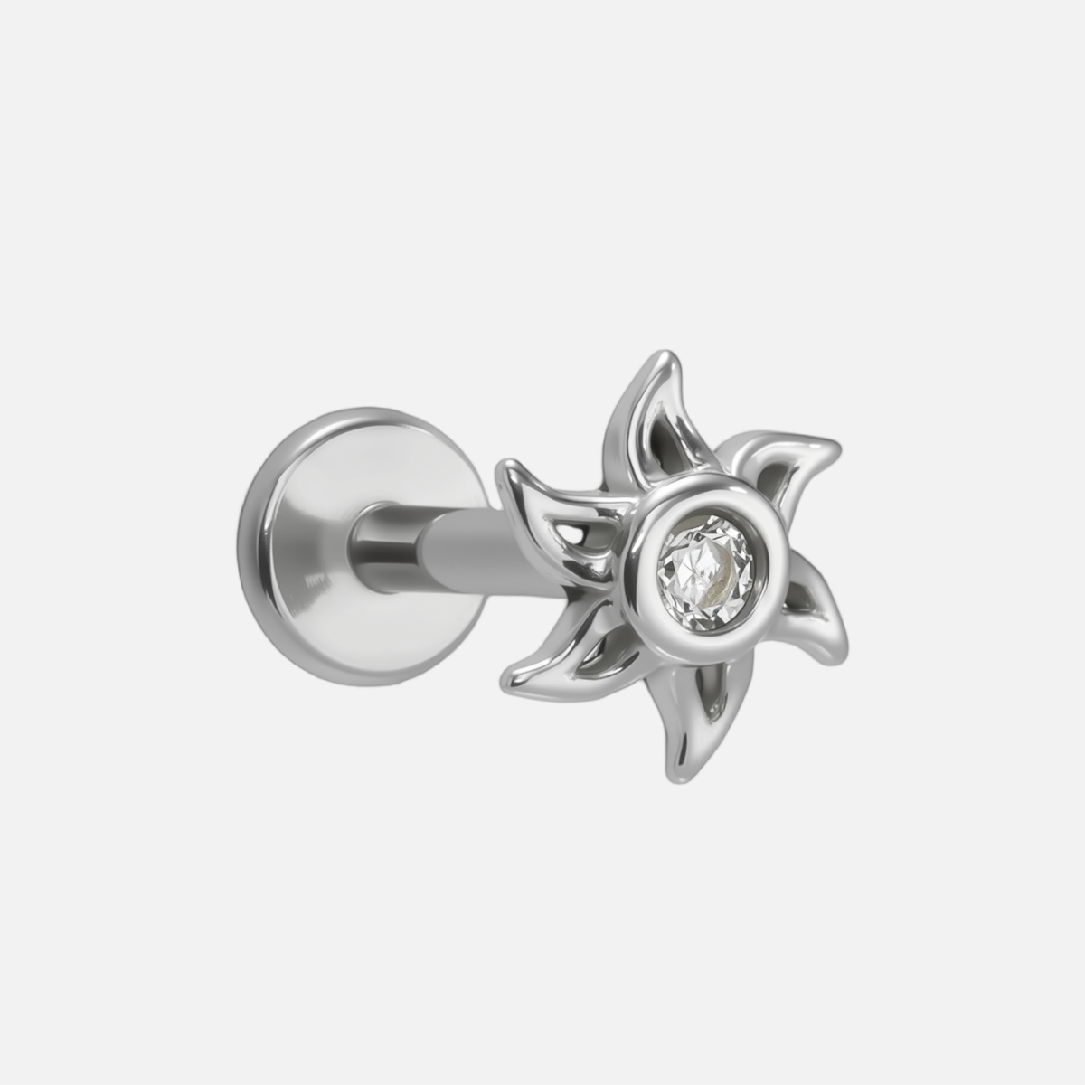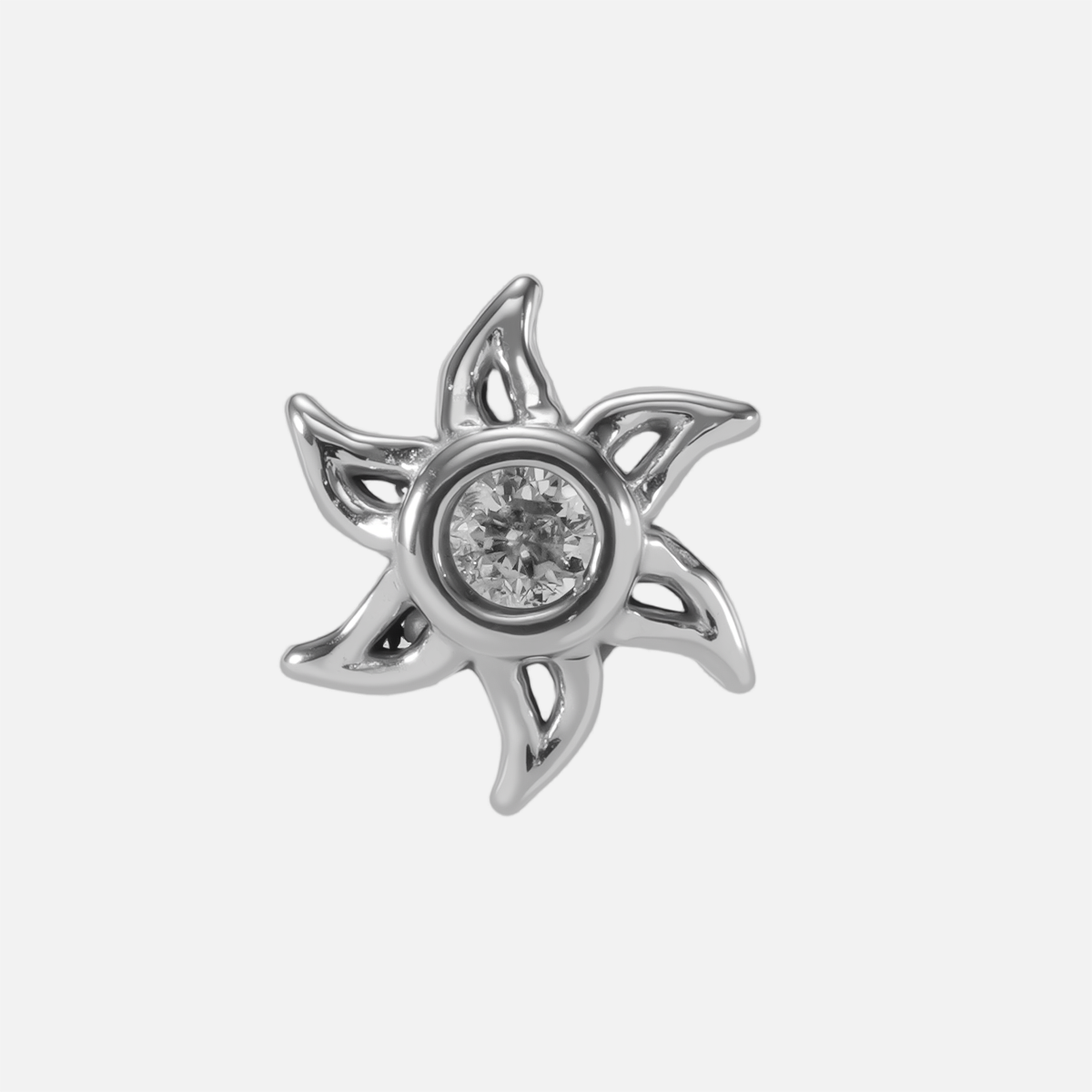 Radiating with a sunburst silhouette, the Solar Bloom Flat Back Stud features a bezel-set CZ center and airy flame-like petals. This item is sold individually.